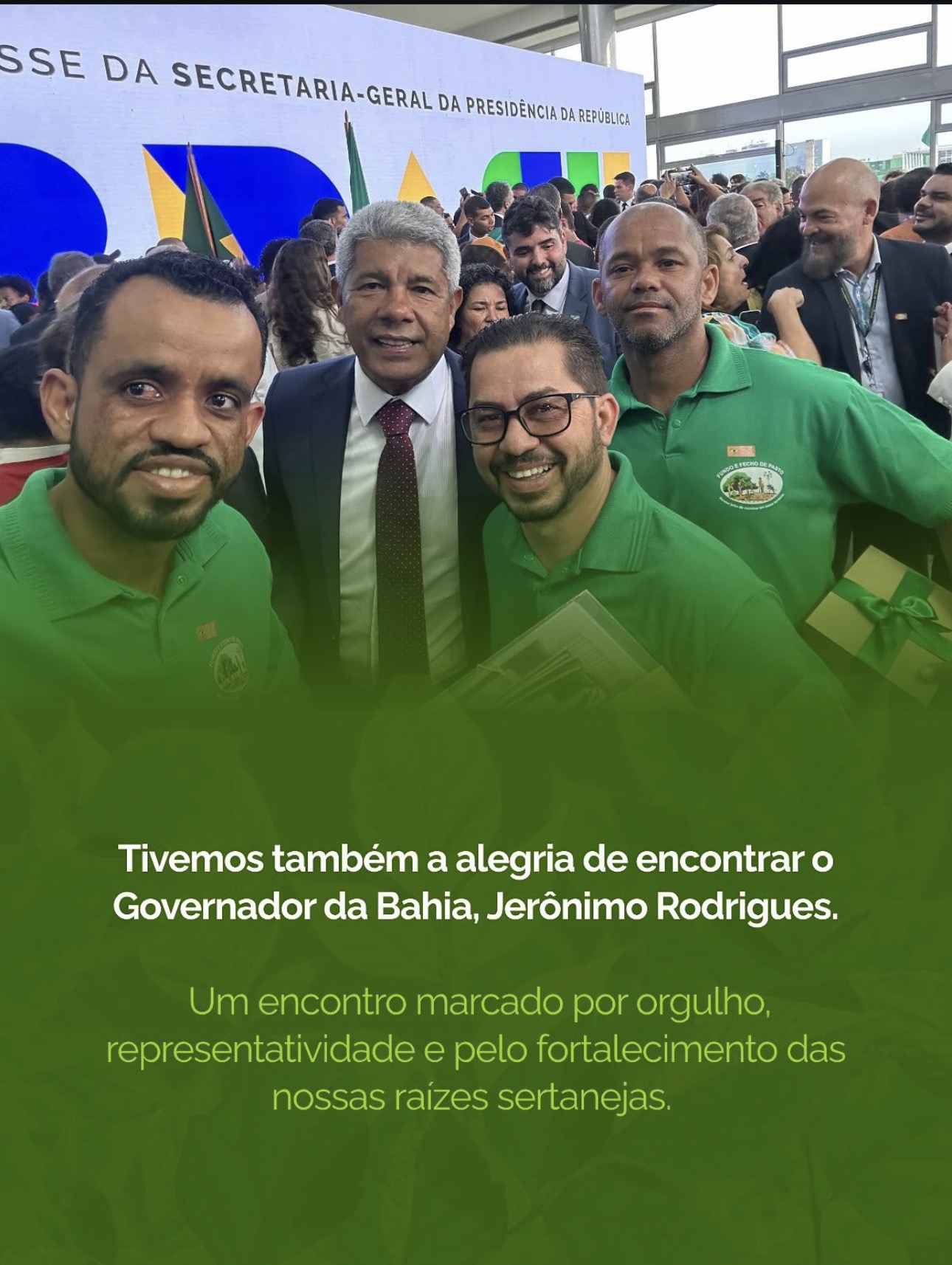 Além das autoridades federais, a Bahia também esteve representada. Durante a solenidade, a comitiva de Oliveira dos Brejinhos encontrou o Governador Jerônimo Rodrigues, em um momento descrito pela organização como de "orgulho e representatividade para todos que fazem parte dessa história".
